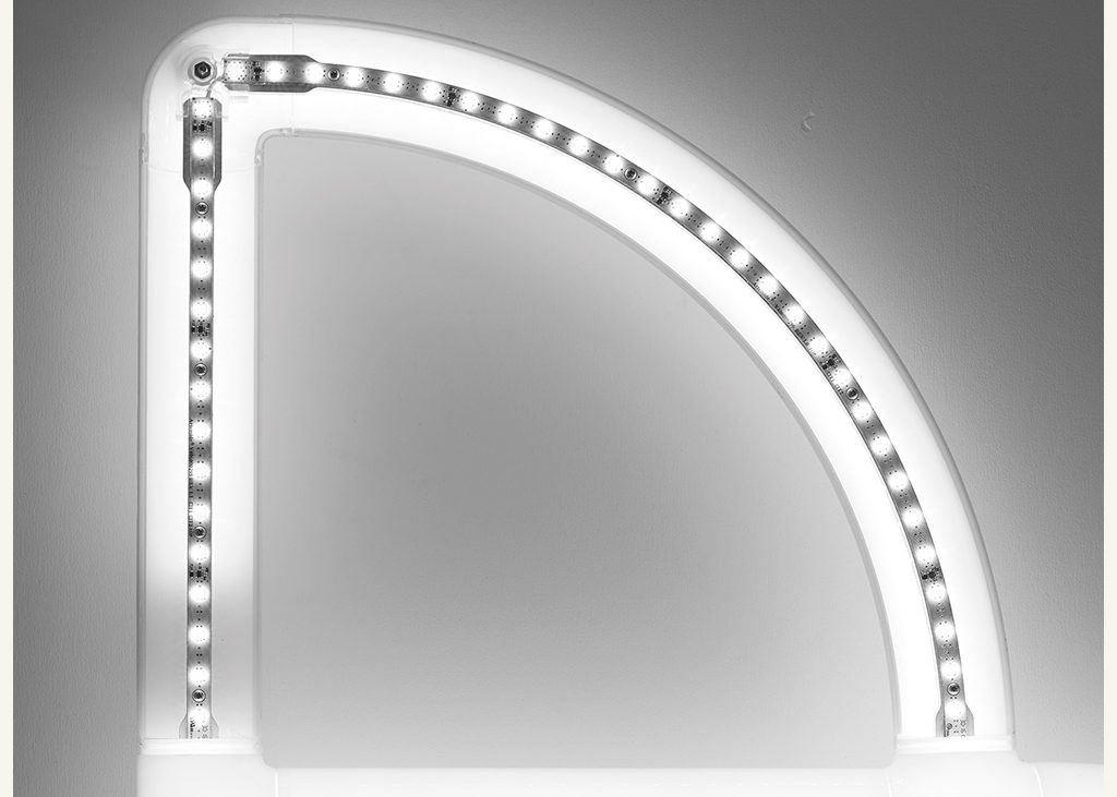 Alphabet of light can be used to design light in a space with words as well as graphic signs using simple base modules with specific geometric proportions that can be combined to create countless linear or curved structures of light.
