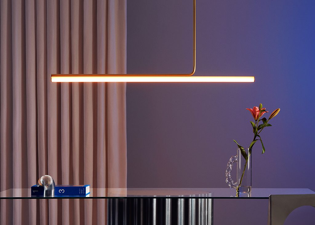 The starting point for the Ambrosia was to bring back the traditional Linestra lamp to update it and show that a technical, resolute design can also be poetic. The Linestra was initially a line of light, which transitioned into a modular system that can be extended to adapt to any space.