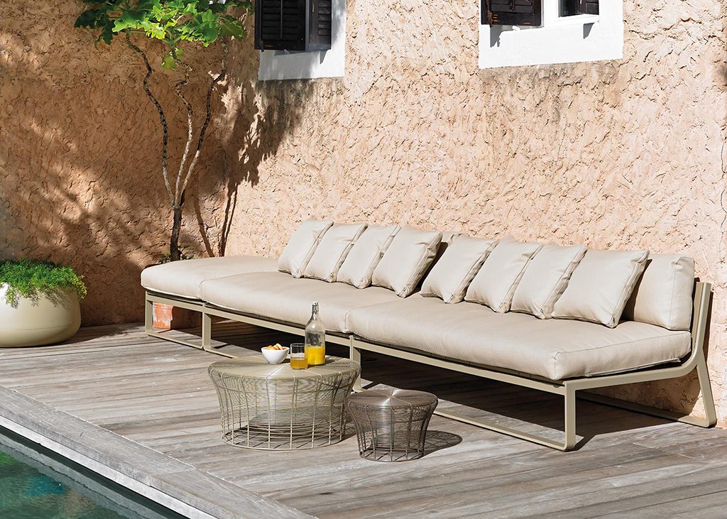 The Aram collection came about from innate curiosity about everyday objects. The work of Japanese designer Oki Sato, founder of Nendo Studio, the Aram collection consists of elegant and delicate stools and auxiliary tables, created using an Indian craft technique that consists of weaving wires around a metal frame. Since they are made of thermo-lacquered stainless steel, they can be used both indoors and outdoors.