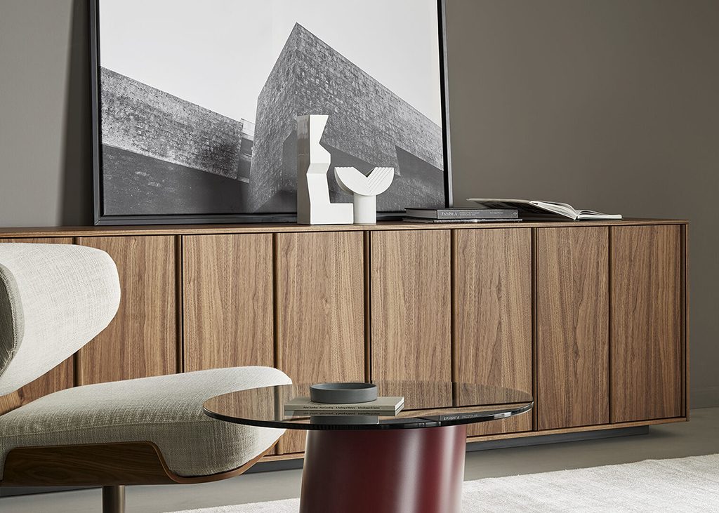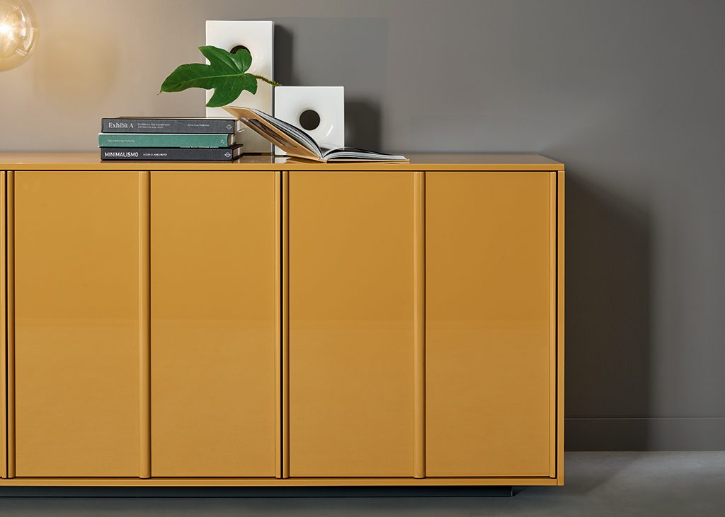As its name suggests, the main characteristic of the Backdrop sideboard by Alain Gilles is the vertical cut of the doors, which evokes a sense of calm, thanks to its repetition along the entire length.The design of this piece of furniture is well-structured, drawing inspiration from the façades of the modernist buildings: the vertical lines hide the grooves used to open the doors.