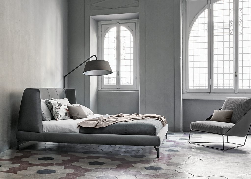 The enveloping shape of the soft padded headboard, which is rounded on the sides, gives the Basket double bed a pleasant and welcoming appearance.