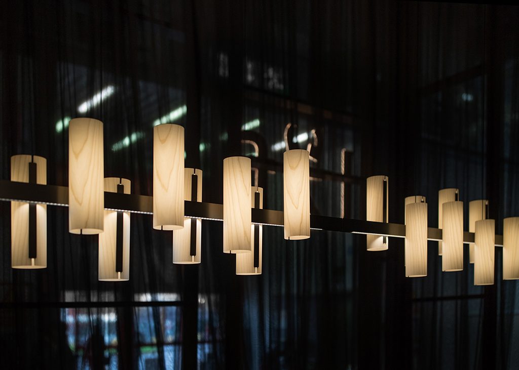 Designed by Ramón Esteve, Black Note is a lamp with perpendicular shades that rise and fall in harmony. Its rhythmic arrangement is inspired by the black keys on a piano, whose sharp and flat notes add emotion and passion to a melody.