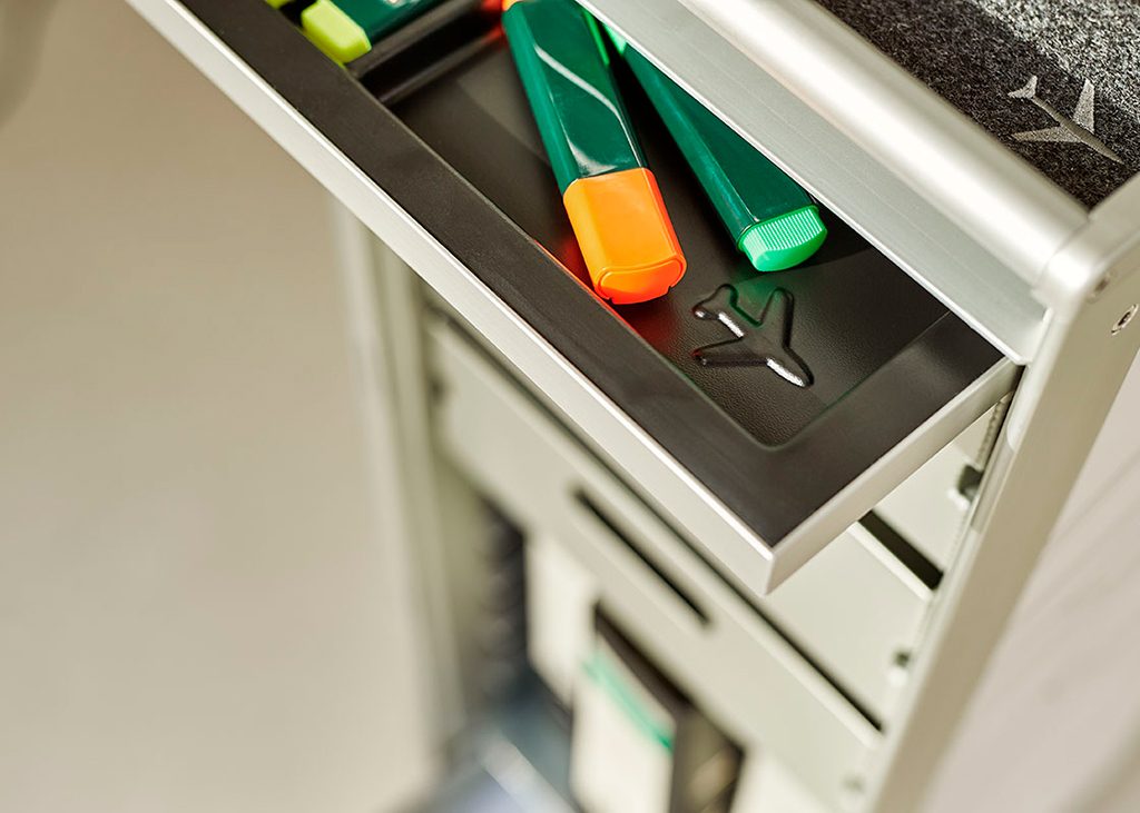 Probably the greatest challenge for anyone working from home is to create an inspiring workspace in which one can work undisturbed and be productive. At the same time the work and the living spaces need to be separated visually. Apart from the functionality and economy of a home office emotions play an important part, too, meaning: it’s important to feel good. Use your bordbar as a lean work station in your home and have 0.12 square meter of perfectly organised space for storing and stowing your office utensils whilst smoothly fitting in with your interior design.