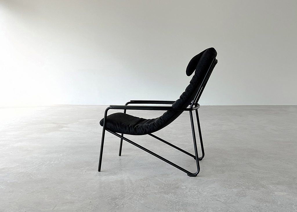 The seat is a long, suspended, sling that adapts to everybody in a natural way. While the soft upholstery allows us to take a relaxed position.