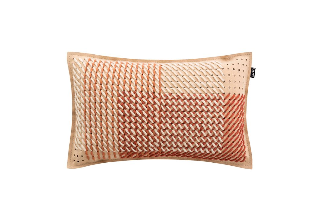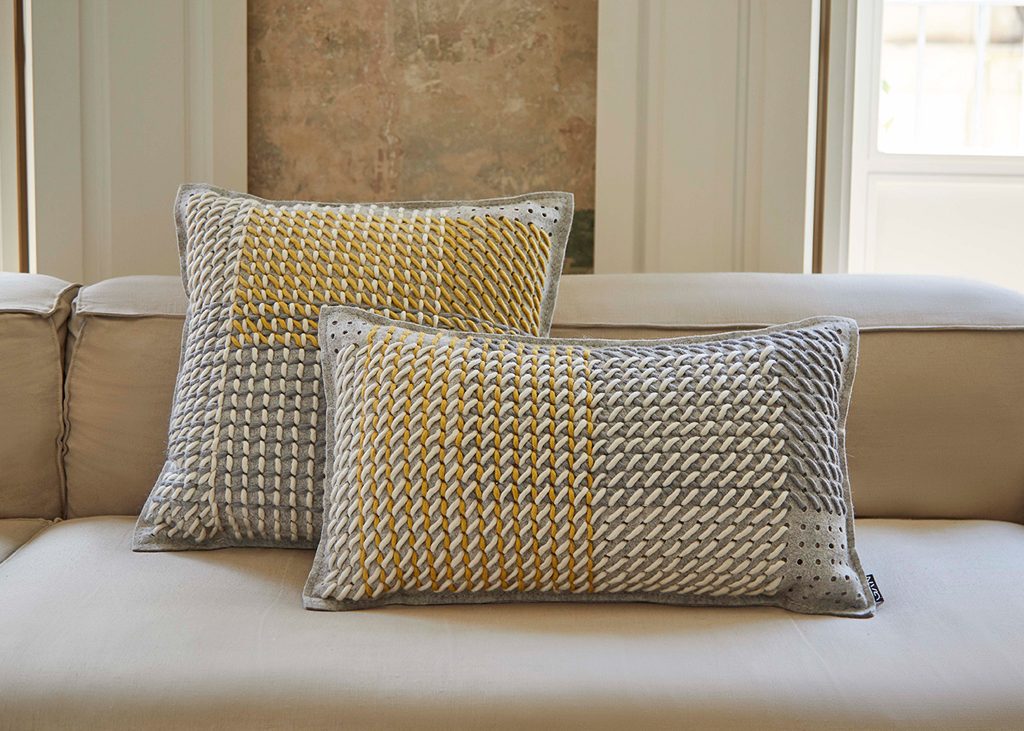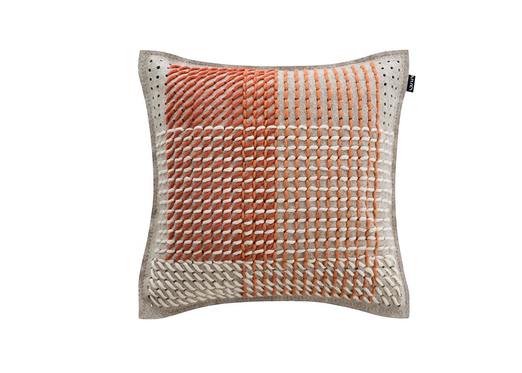 CANEVAS GEO, by Charlotte Lancelot, explores the creation of color overlays through the use of cross-stitching over a base of perforated felt.