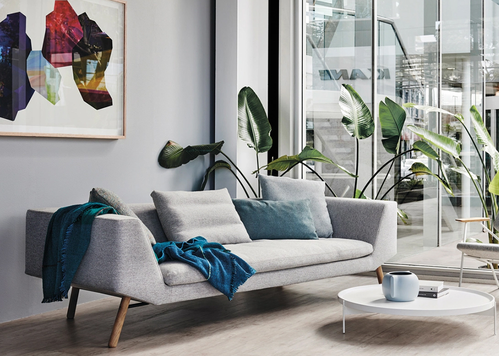 Combine is a seating system of reduced form characterized by the profile of the lower side of the backrest. Depending on the choice of wooden legs finish and optional cushions, the style and the application context of Combine varies, enabling the user to define his or hers own preferred character of the sofa.