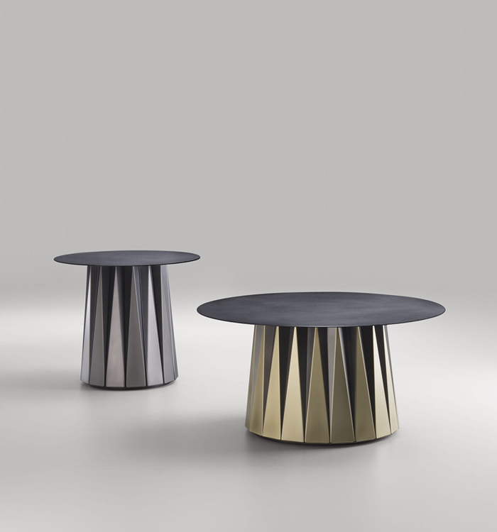 Partition, vase and lamp, several functions combined in a single, highly appealing element with strong visual and theatrical impact. Made in laser-cut metal, it can also be installed outdoors. Designed for the assembly of an IP 65 kit of two 220V – 35W bulbs.