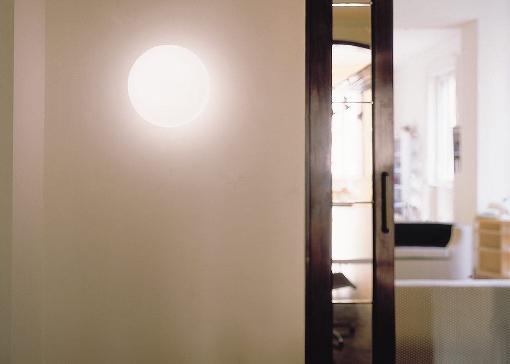 A globe-like diffuser of acid-etched blown glass atop a thermoplastic base, Dioscuri is available in 4 sizes which are all dimmable aside from the smallest.