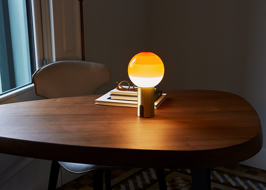 The history of the Dipping Light has only just begun. Marset wasn’t willing to settle for just the two table lamp sizes it has come in so far. Its most poetic light expands its uses and is now offered as a portable lamp, suspension lamp, wall lamp and a new table lamp size –ø8 inches– to bridge the gap between the small and large sizes. The colors are the same, with an expanded model line-up.