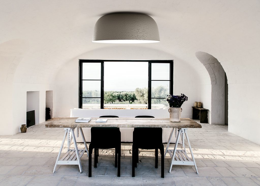 Djembé is a lamp designed for use in public spaces that seeks to bring beauty and an unbeatable quality of light. A separate accessory allows for the installation of sound-proofing panels.