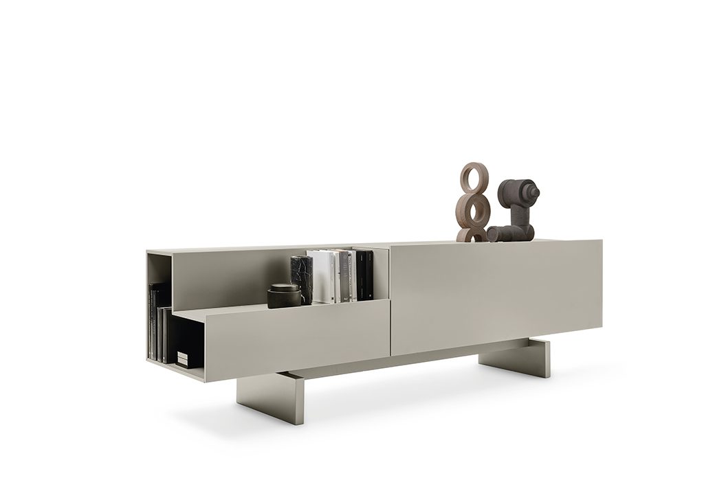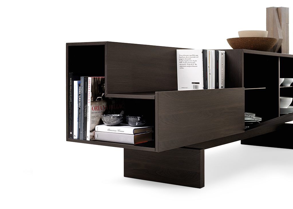 Ella is a sideboard with structure in mdf lacquered in all colors as per sample card or plated in heat-treated black oak. Container with a linear design thanks to simple and pure elements placed side by side and superimposed, of empty and full spaces that take on an architectural character within any room of the house.