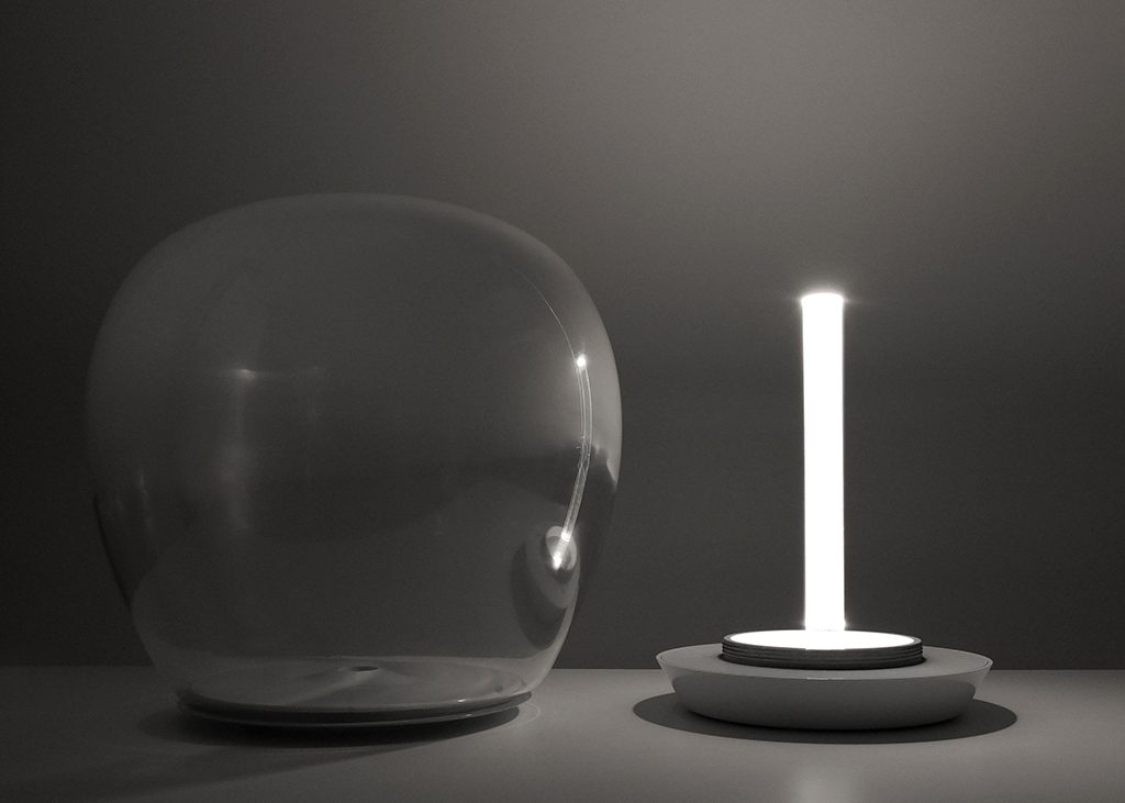 Empatia is inspired by the association between the great glass-blowing tradition and the LED technology of Artemide.‎ High interest in the expression potentials of this material resulted into co-operation with master glass blowers to gain full control of the special suppleness of Venetian glass and to work on the balance between surface and light, between subtle densities and transparencies.‎ Hence clear, pure craft objects, each of them unique in all respects.‎ Transparency and opacity are wisely dosed to obtain a glass that reflects light without glaring and without losing efficiency.‎ Hence optical device, whose heart is a high-performance LED-based light engine created separately from the glass emission body in favor of higher thermal efficiency and performance.‎ Light is controlled with maximum yield and driven towards the glass diffuser through a transparent pipe with a very low absorption coefficient.‎