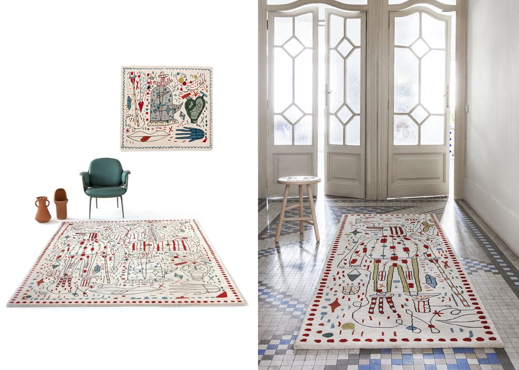 Created with the hand tufting technique, a manually operated pistol injects pieces of wool, intuitive and fluid lines are achieved, as well as an organic composition. The definitive and faithful reproduction of the original sketch by the designer.