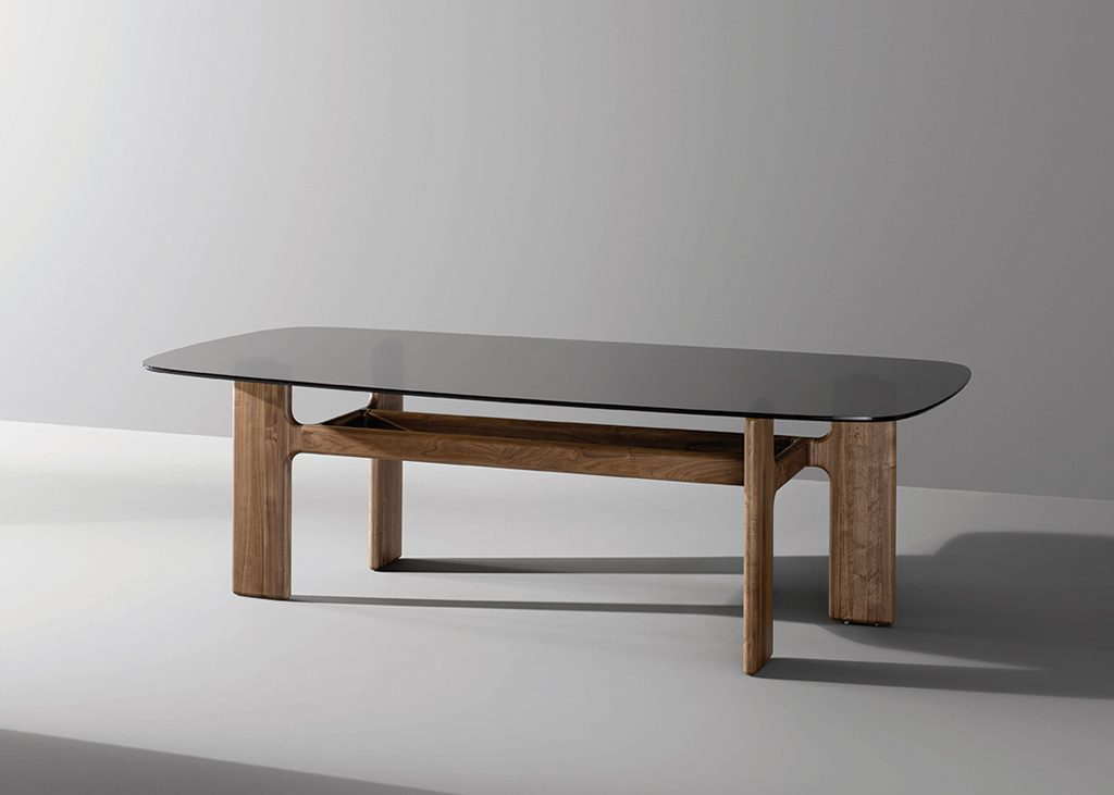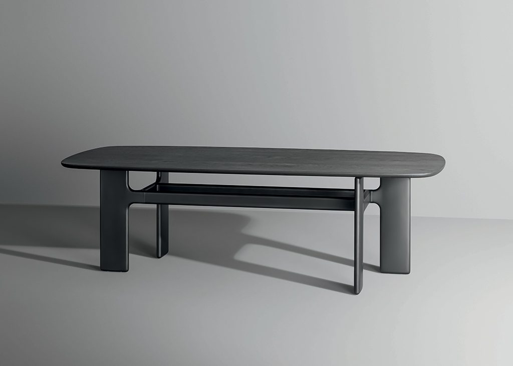 Designed by Marconato & Zappa, the Hippos dining table catches the eye thanks to its archetypal shape which blends the clear and regular lines of the base with the delicate oval shape of the legs. This composition gives the table a dynamic silhouette with great visual strength, capable of changing from slim to solid depending on the light, the surrounding space and the point from which it is observed.