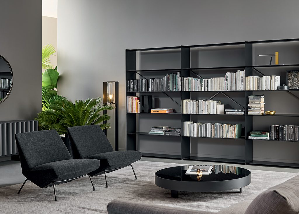 The Jazz coffee tables feature a formal linear design, which comes in a rectangular or round version. They have a spacious surface area that showcases the typical decorative objects featured in living rooms. Jazz coffee tables are almost at floor level, slightly raised on metal feet with a highly geometric shape. The imposing table top, available in glass or ceramic, is outlined by a metal edge which contrasts with the almost invisible base.