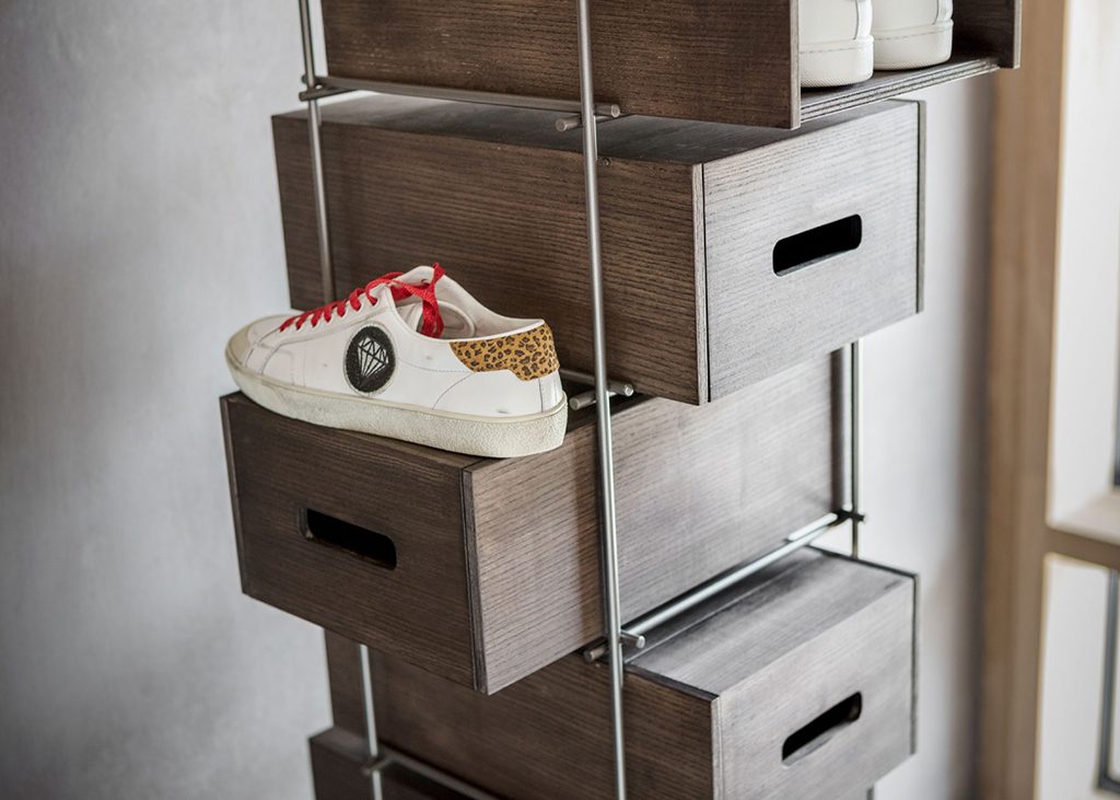 Manolo is a new concept of shoe cabinet, a stylish and functional product. Finally a shoe rack that should not be hidden but that wants to be exhibited in the domestic environment.