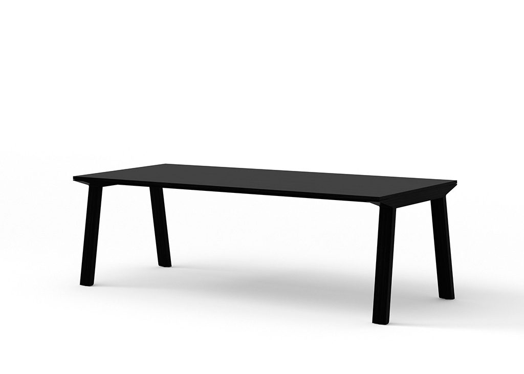 A collection of tables with a solid appearance and exquisite detail both in the tabletop and in the trestle-like grooved legs. Table supported by adjustable feet.