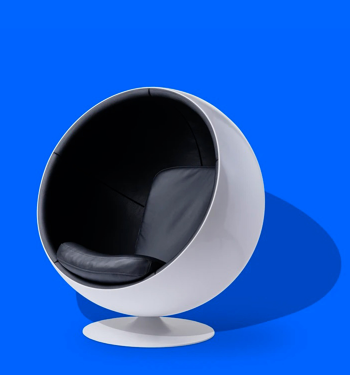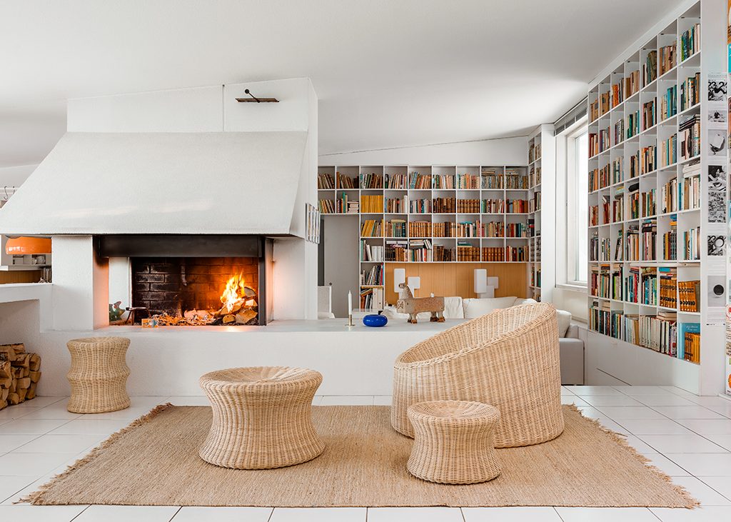 The Mushroom Double is made of woven rattan with an aluminium base. It is also available in black poly-rattan, suitable for outdoors.