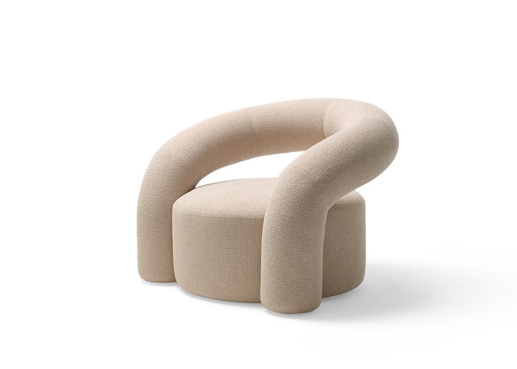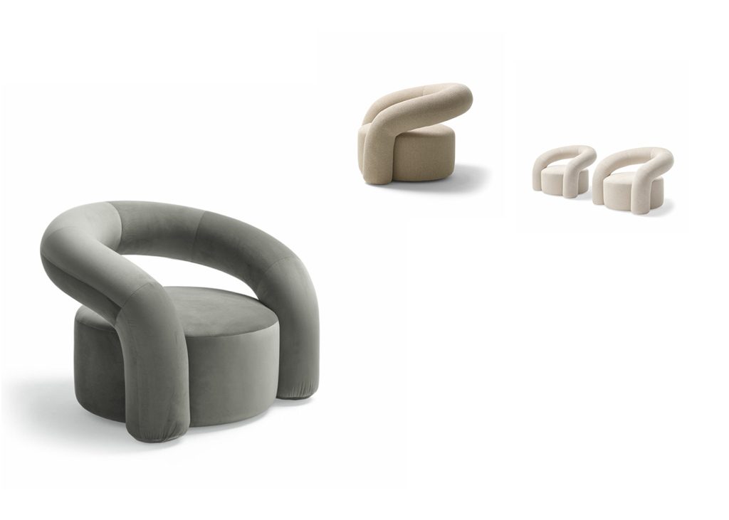 Nora is a padded armchair with a curved plywood structure with soft and welcoming shapes that recall an abstract and utopian, almost fairy-tale world. Its appearance is reassuring and sturdy.
