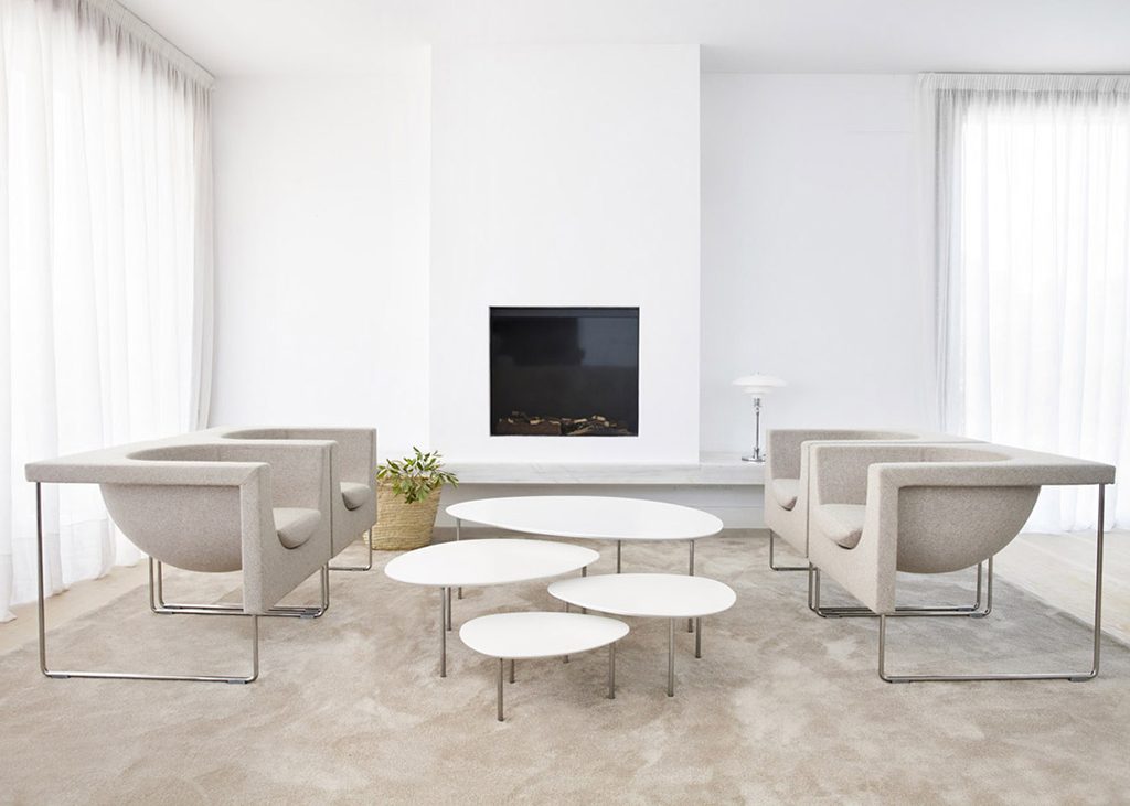The design of the Nube armchair comes from the combination between the flat orthodoxy of the contemporary spaces with the curves of the human body. While the outside lines of Nube armchair are made of flat parallel surfaces, the space where we can sit is curved and cosy, like a nest. Instead of a solid block, the design of Nube armchair allows to see all the back part of the armchair. So the shape with all the curves where we are going to sit is visible. Looking at the armchair, before seating, we can already expect a big comfort from the armchair.