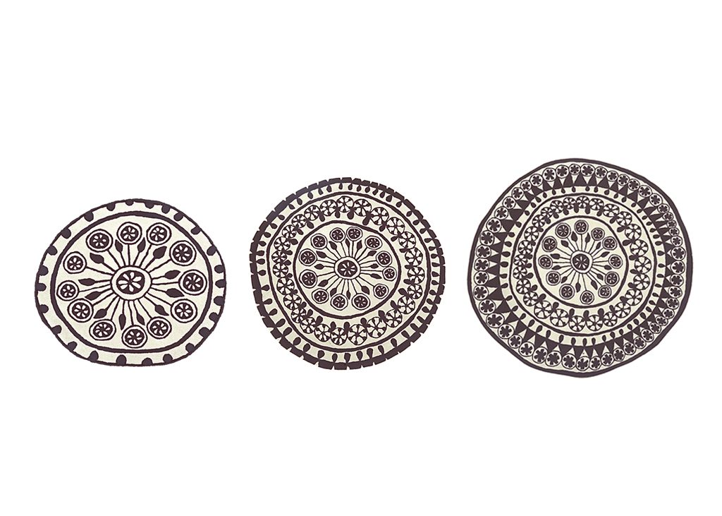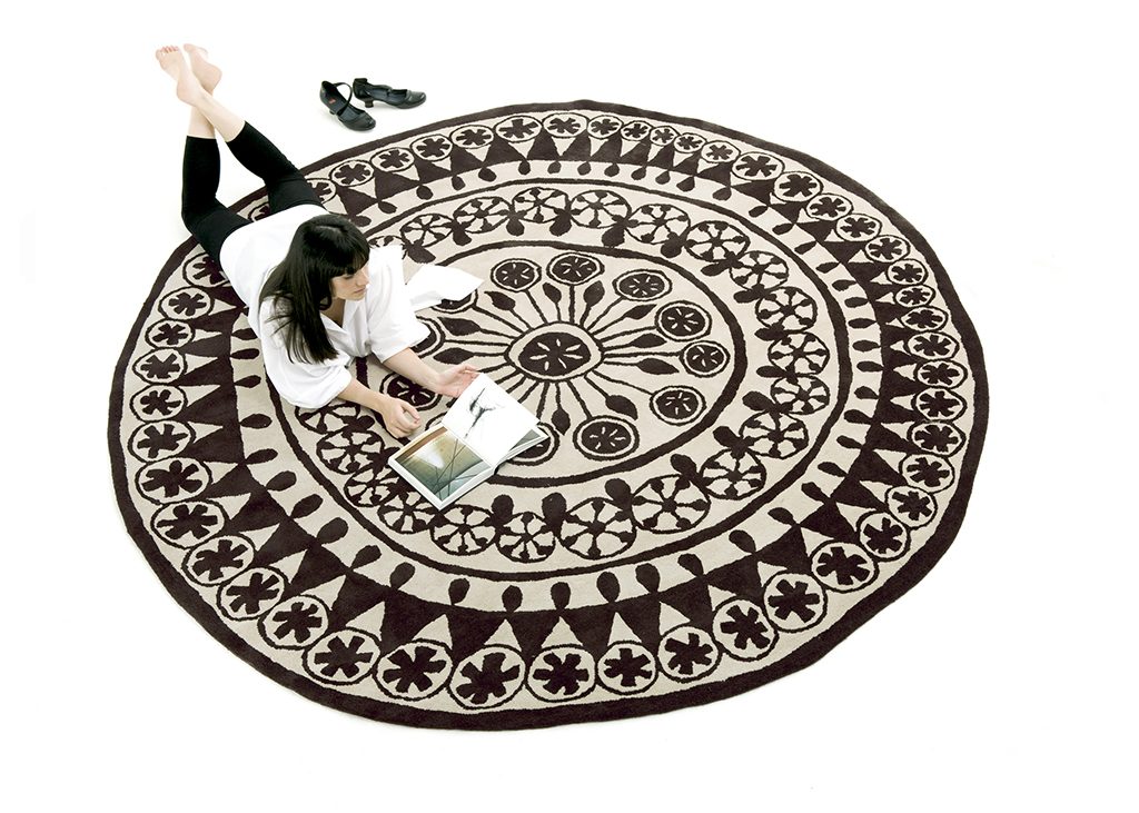 The pattern is normally composed of flower petals, leaves, coloured powders, rice flour, and other elements that act as a vehicle for decoration. Inspired by the essence of the Rangoli, the rug is a tribute to the original essence, acting as a beacon of wellbeing and welcome.