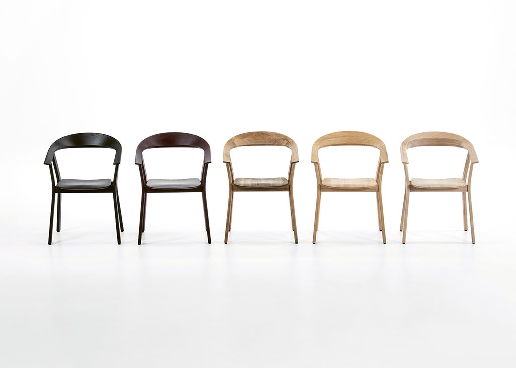 Rhomb is a spacious, comfortable and solid chair with armrests, produced in combination of latest wood manufacturing technology and sophisticated handcraft. The character of a chair is defined trough rhomboid section which rotates and changes its shape depending on the function of the curve that unites backrest and armrest. Through selection of several types, colours and finishes of solid wood, the chair easily adapts to various interior situations of residential or public spaces.