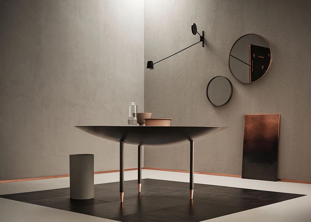 A collection of wall-mounted mirrors that celebrates the virtues of simplicity. Characterized by the essential, complete form of the circle, Riflesso is distinguished by the thick brass and iron frames that outline its reflective surfaces, delimiting rings of different sizes to hang alone or in groups. Versatile pieces perfectly suited to the contemporary nature of domestic living, these decorative items combine the richness of De Castelli finishes with the extreme essentialism of its shapes.