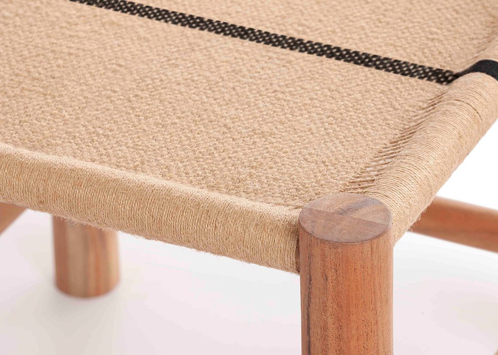 ROOTS is a series of four kilims made of jute and cotton that evokes the Mediterranean origins of Inma Bermúdez and GAN, extolling the work of artisans. Sobriety, warmth, and neutral tones are framed by a repeating square shape, in different scales and rhythms. Two stools, single and double, with a babul tree wood frame complete the collection.