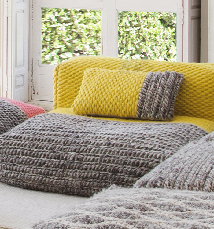 The RUSTIC CHIC collection by Sandra Figuerola is hand made using materials like jute and wool that are combined in incomplete patterns, fragmented and asymmetrical with a daring colour palette.‎