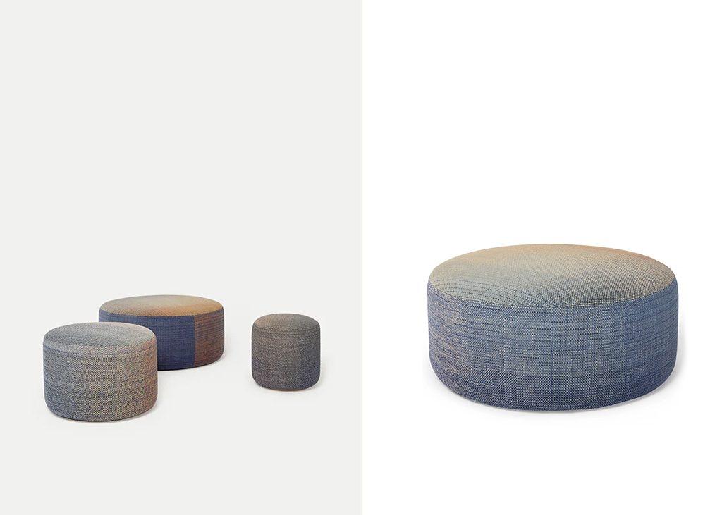 The collection of Shade poufs is born to complement one of our most succesful collections. And as the original rug models are inspired by magical moments in nature where colors melt and speak for themselves. Shade palettes achieve an intricate gradient that leaves no one indifferent.