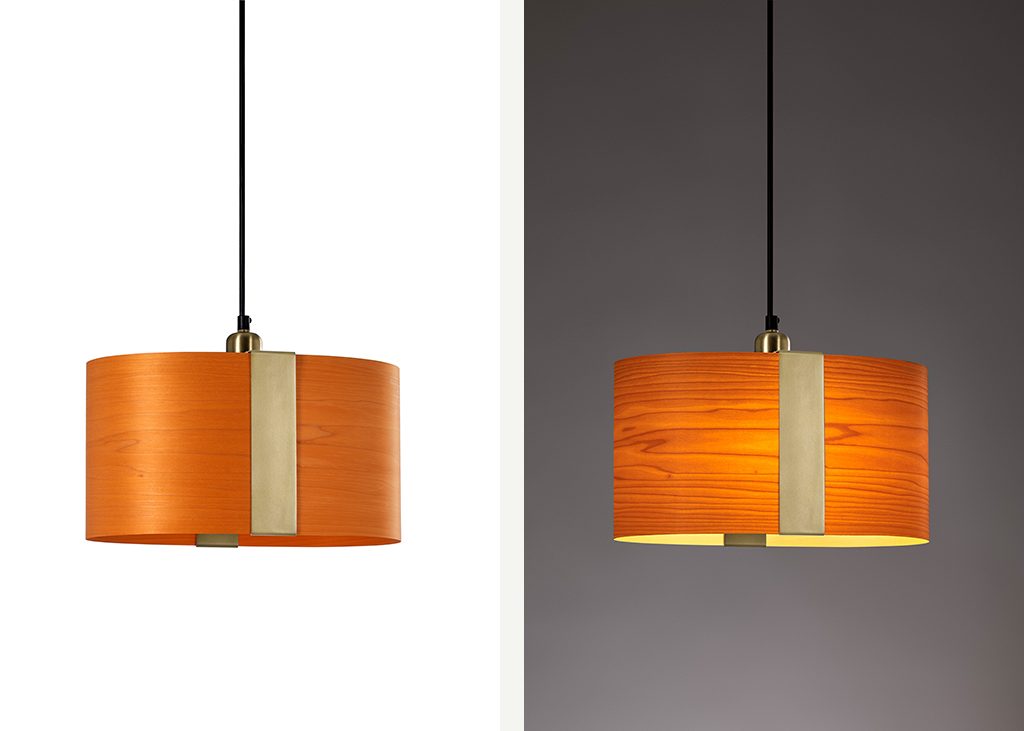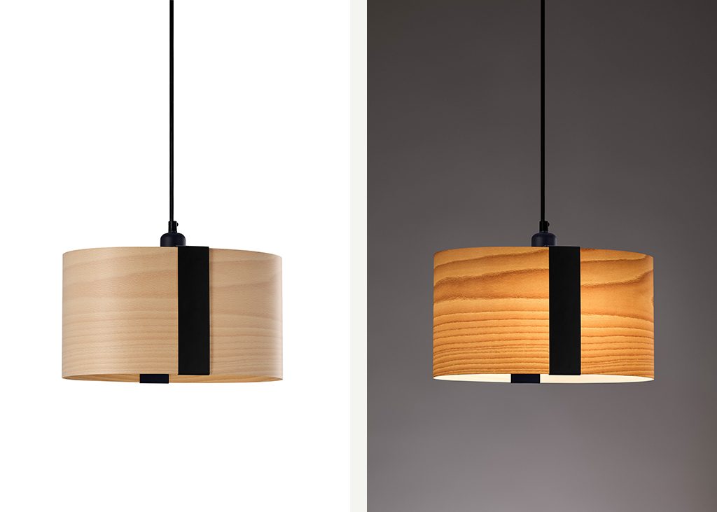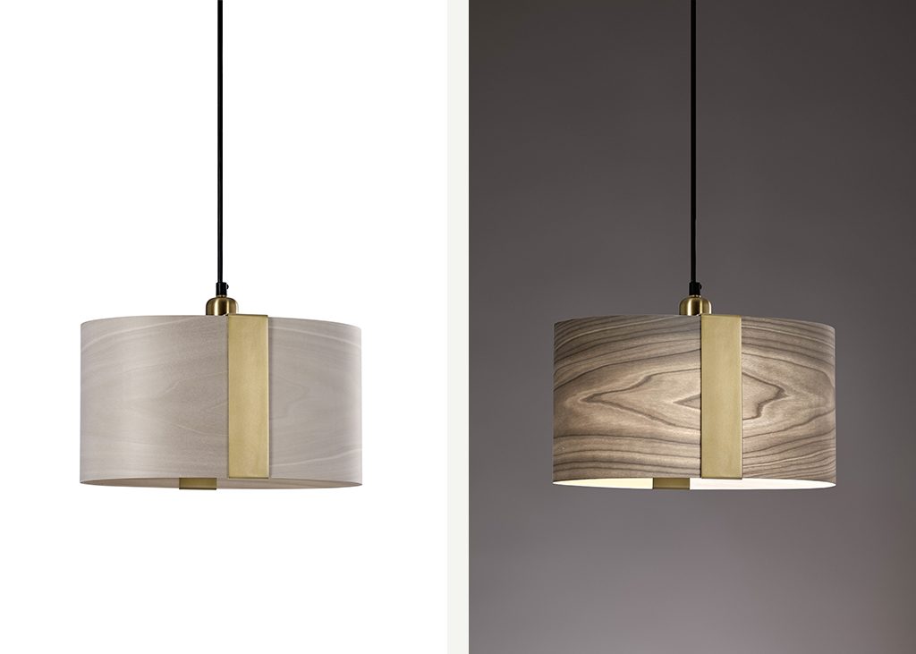 Sushi, a suspension lamp designed by Ray Power, captures the essence of the traditional Japanese dish (Edomae sushi) in wood veneer. The unfussy, elongated lamp is wrapped in a narrow metal band—in the manner of rice wrapped in seaweed. As a lamp, Sushi reflects the Japanese aesthetic for simple, elegant, and functional designs made using wood. In designing Sushi, Power focuses attention on the natural beauty of wood veneer.