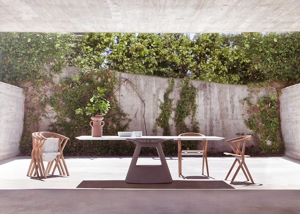 The Table B has converted into a classic design of the 21st century with lengths from 1.8m to 5m. The outdoor version can be installed with architectonic concrete leg(s) or stainless steel rod legs.