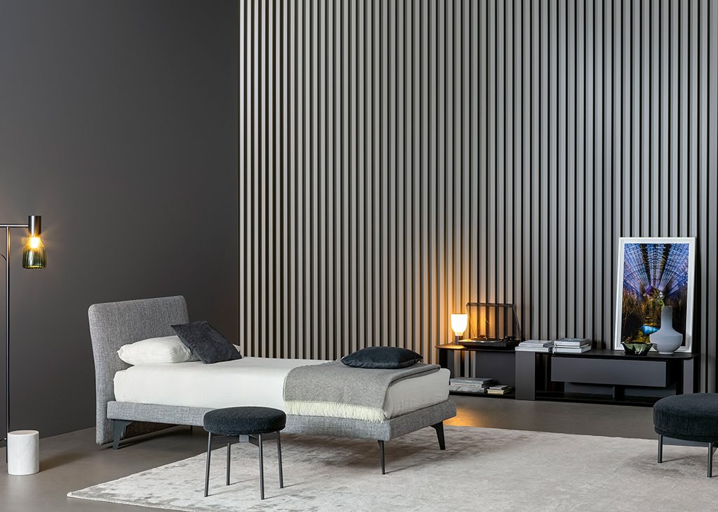 In the single version, Tonight is a bed that manages to best sum up the space in which it is placed. A comfortable invitation to rest, characterised by soft padding and a rounded design, defined by tailor-made attention to detail.