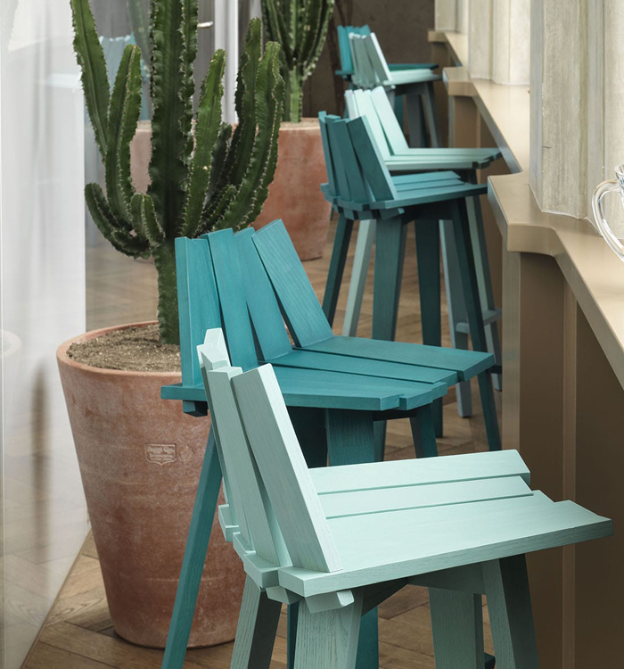 Floor lamp with black painted solid wood structure complete with metal base. Form clearly recognizable by the strong graphic sign as a sculpture wants to be a domestic micro-installation, maintaining the functional qualities of the lamp.