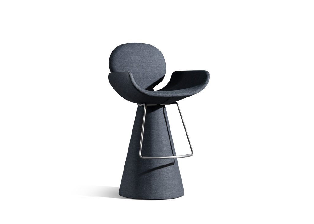 The Youpi too stool expands the Youpi family, enriching it with a slender and functional version of the seat. Designed by Fabrice Berrux, in this fixed-height stool the circular backrest complements the generous and welcoming support surface, while the conical swivel base ensures solidity and dynamism. A practical metal footrest adds comfort and elegance, making Youpi too the perfect stool for contemporary settings, from living to contract spaces.