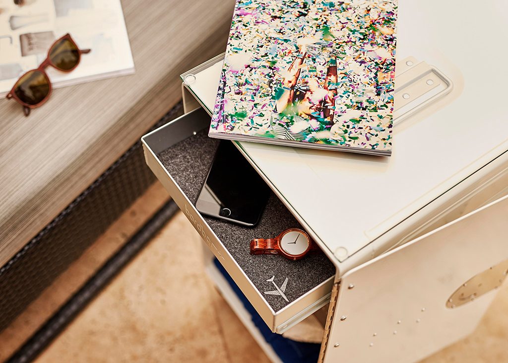 Le bordbar_box est exactement le même que dans les cuisines des avions. Fidèles au style original, ils sont équipés de roulettes doubles pour chariot, qui les rendent légers, flexibles et maniables. Grâce aux nombreuses applications possibles, bordbar_box s'adapte facilement aux nouvelles exigences. Il peut être équipé d'un berceau de classement extraordinaire, être utilisé comme table de chevet ou comme table d'appoint chaque fois que vous en avez besoin. Parfaitement placé et élégant pour toutes les occasions.