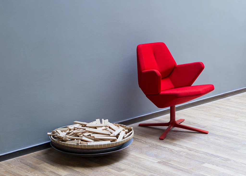 Trifidae est une famille de produits qui comprend trois types différents de fauteuils conçus à la base d'une même source typologique et formelle. Un fauteuil petit, un fauteuil à dossier haut et un grand fauteuil "enveloppant" ont une structure caractéristique, composée en trois parties et ils partagent les mêmes formes angulaires s'élargissant d'un centre imaginaire, ce qui donne au meuble une forme de plante. La rotation de trois éléments structurels de base lors de l'usage, fait penser à la fermeture et à l'éclosion de bourgeons de fleurs. Cette caractéristique, ensemble avec sa forme en trois parties qui ressemble à une étoile, a été l'inspiration pour le nom botanique de la collection. Si le petit fauteuil diffère en dimensions de deux autres sièges, le fauteuil à dossier haut et le fauteuil enveloppant partagent la même base et l'accoudoir, si bien que tous les trois modules sont perçus comme des formes géométriques voisines. Une variation dans le dossier de deux modèles grands résulte en leurs caractères très différents. Le dossier enveloppant produit un fauteuil introverti, fermé, d'une forme expressive qui protège l'usager de son environnement, alors que la forme svelte et allongée de l'autre dossier représenté une variante moins réservée, plus sociable du siège.