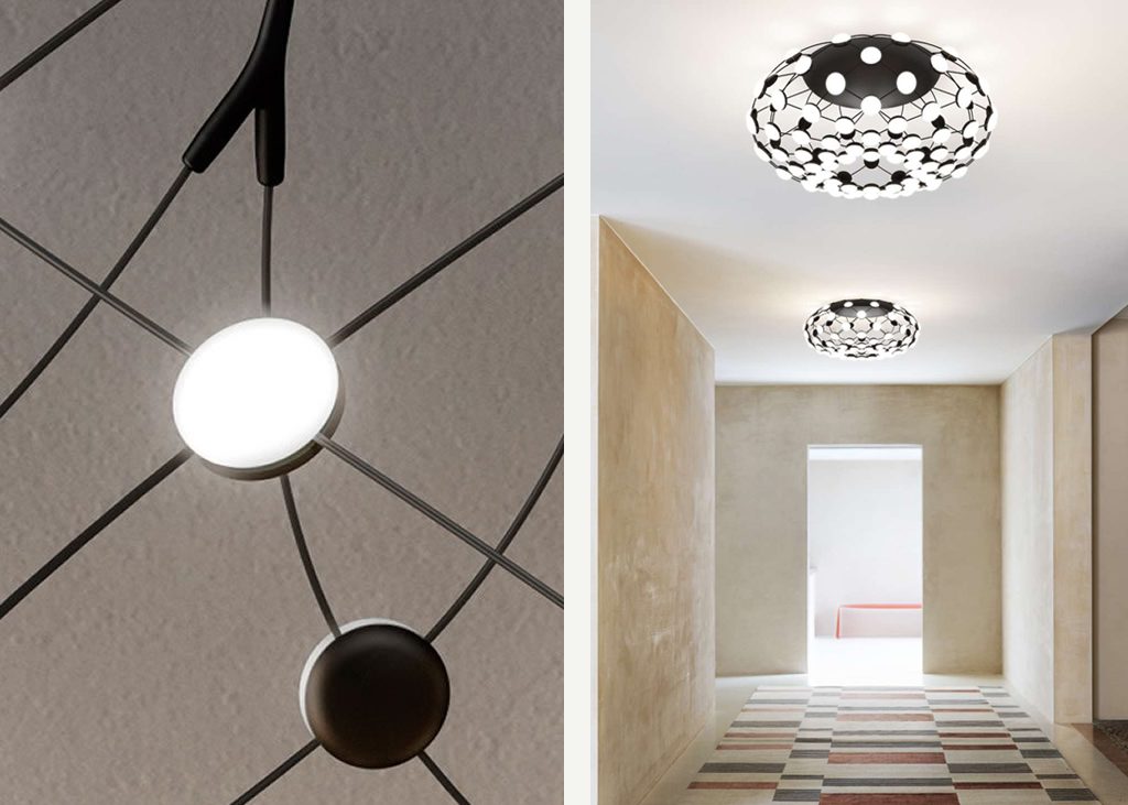 La famille Mesh s'est agrandie avec une version plafonnier ayant 96 points lumineux. La structure particulière permet une liberté exceptionnelle dans le contrôle de la luminance. Il est possible de régler l'intensité de la lumière.