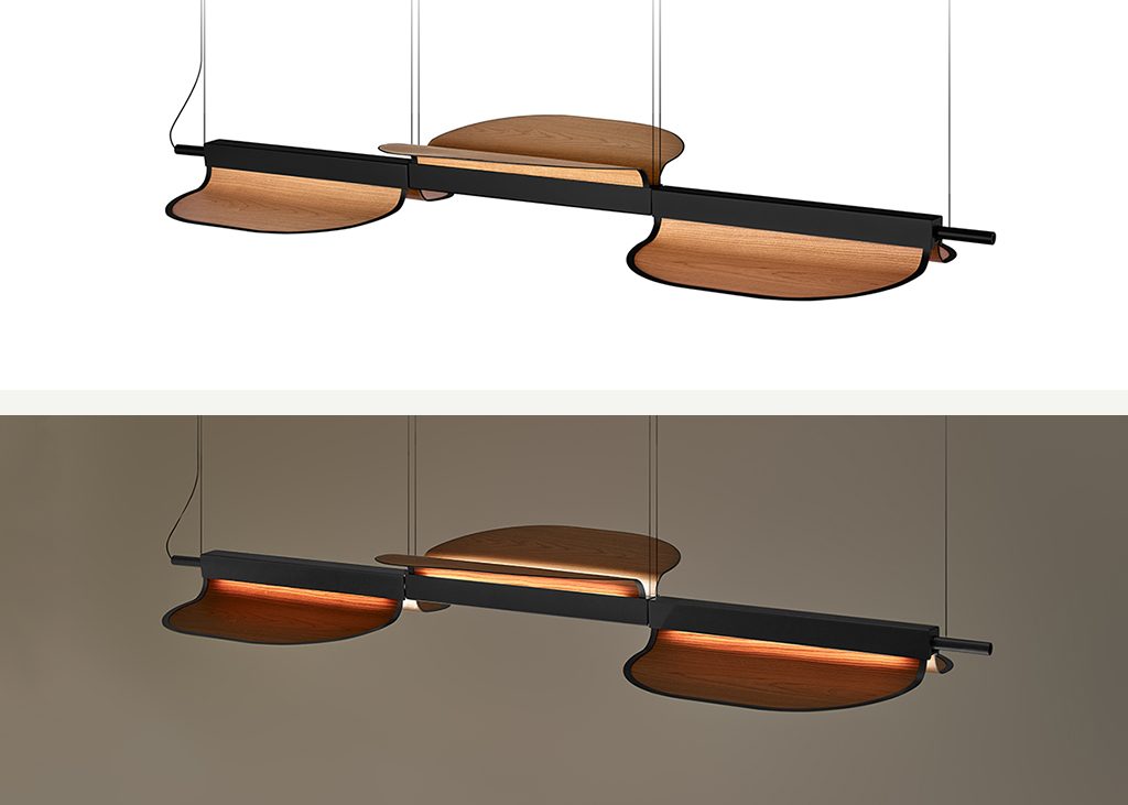 Omma est une lampe inventive, comme un arbre aux feuilles flottantes pleines de lumière. Dans le design séduisant d'Eli Gutierrez, il est presque possible d'imaginer le placage de bois mobile de la lampe, astucieusement bordé de métal, battant dans une douce brise.
