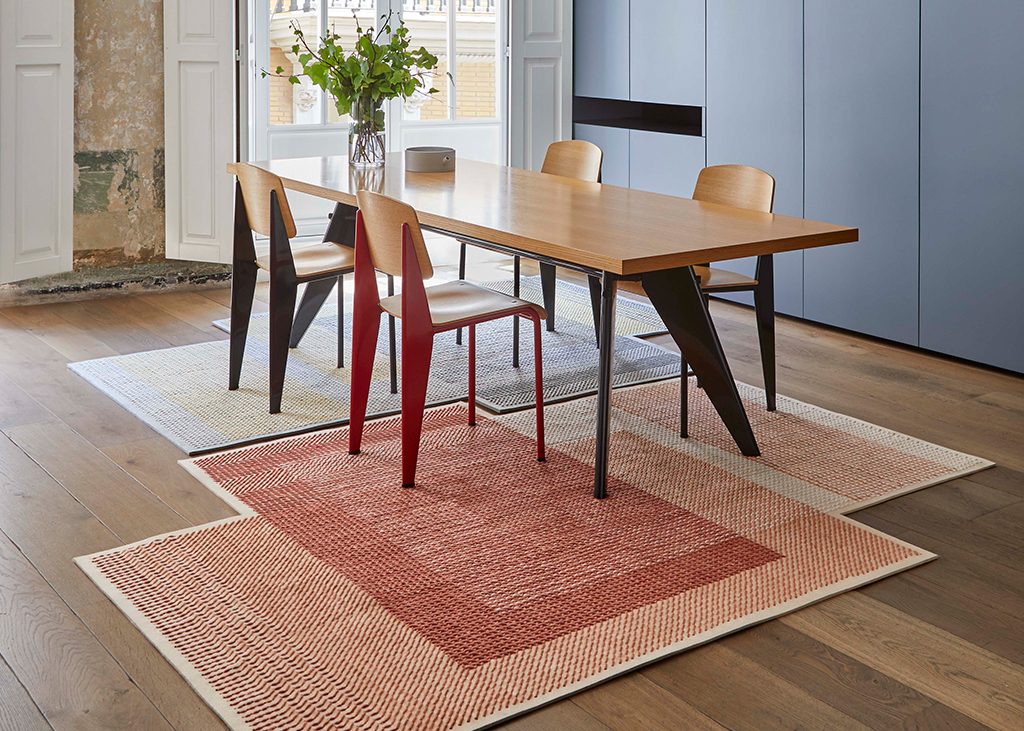 CANEVAS GEO, de Charlotte Lancelot, explore la création de superpositions de couleurs grâce à l'utilisation du point de croix sur une base de feutre perforé.